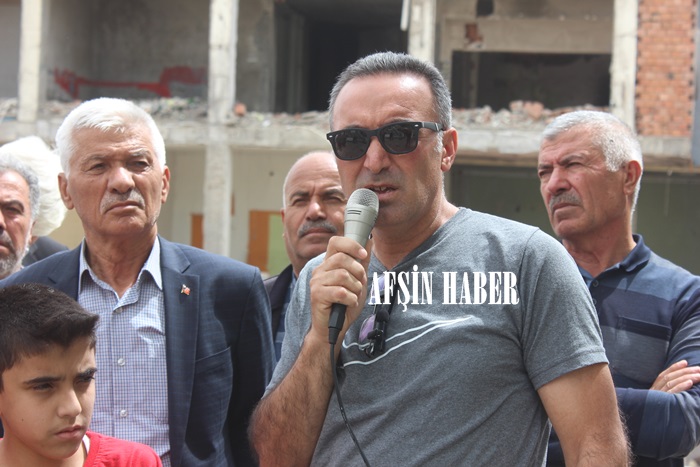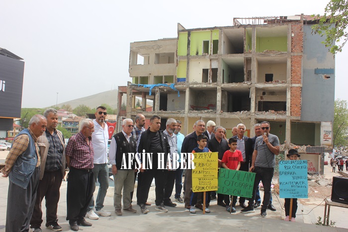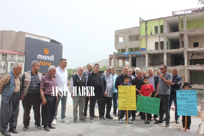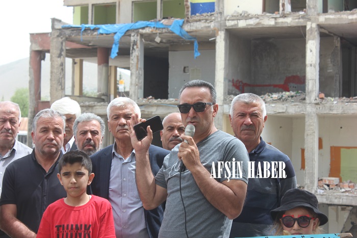 Yediler İş Merkezinde ki Hak sahipleri adına Basın açıklaması yapan Yediler İş Merkezi Derneği Başkanı Mehmet Alp, Malumunuz üzere :şu anda üzerinde bulunduğumuz alanda ,içerisinde yaklaşık 250 işyeri ve büro bulunan yediler iş merkezi bulunmaktaydı.Deprem in akabinde 8 farklı bloktan oluşan iş hanımıza afad görevlileri tarafından ağır,orta ,az hasar ve hasarsız şeklinde raporlar verildi.Daha sonra ki itirazlarımız sonucunda ilgili görevliler tarafından tamamı ağır hasara dönüştürülerek büyük bir bölümü yıkıldı.Kalan bölüm bizim alanımızdan ayrı bir binayla bitişik olduğundan dolayı yıkım durduruldu.Diğer binanın mülkiyet sahiplerinin konuyu mahkemeye taşımalarından dolayı;Afşin sulh ceza hakimliği keşif heyeti geçtiğimiz aylarda gerekli incelemelerini yapıp bu bölümlerinde ağır hasarlı olduğu yönündeki bilirkişi raporlarıyla birlikte kararlarını bildirdiler.Hal böyle iken,deprem sonrası benzer kararlarla ağır hasarlı binaların yıkımı gerçekleştirilirken bizim binamızın geriye kalan yıkım işlemi tamamlanmamıştır.Binanın konumu çarşı merkezde olup,arkamızda gördüğünüz üzere özellikle çatı katında bulunan kereste ve kiremitler aşağıdan geçen vatandaşlar ve araçları için ciddi anlamda tehlike oluşturmaktadır.Buradan mütevellit Afşinde bulunan yıkim ekipleri,milli emlak ve konuyla alakalı diğer yetkilileri buranın bir an önce yıkılıp harfiyatının kaldırılması noktasında hassas olmaya davet ediyoruz dedi.