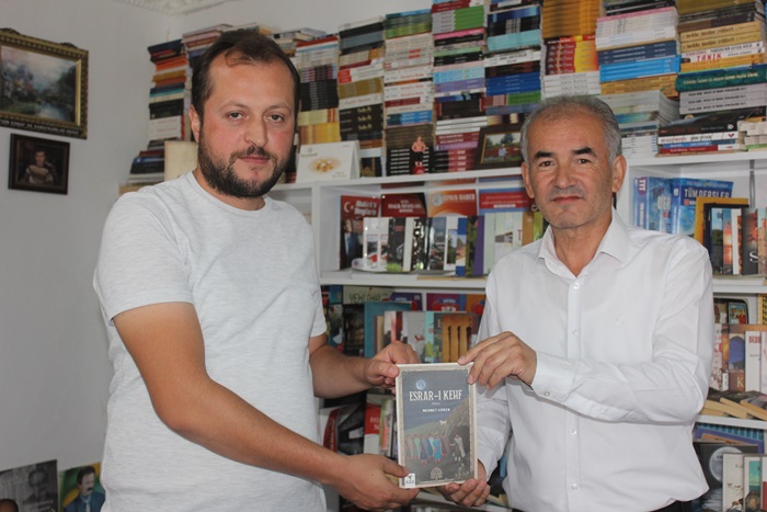 Müftü Mehmet Yürek ve Şube Müdürü Bünyamin Çalışkan’a ziyaret sonunda Esrar-ı Kehf adlı kitap hediye edildi.