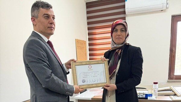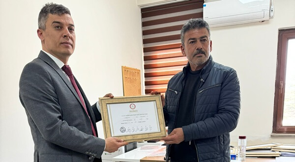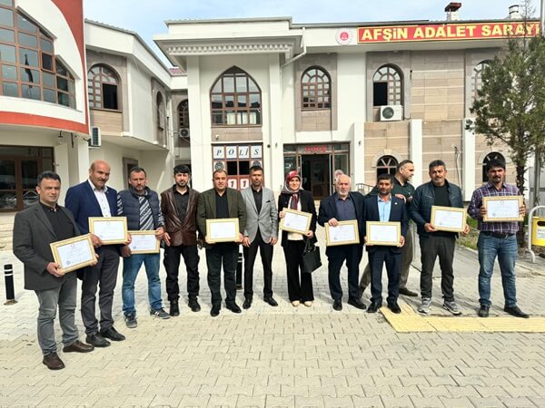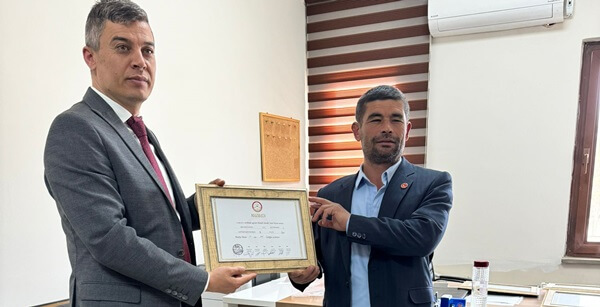 Yeniden Refah Partisi Afşin İlçe Başkanı Emrah Arslan öncülüğünde Afşin İlçe Seçim Kuruluna gelen yeni dönem Meclis üyeleri mazbatalarını İlçe Seçim Kurulu Müdürü Murat İnciroğlu’nun elinden aldılar.